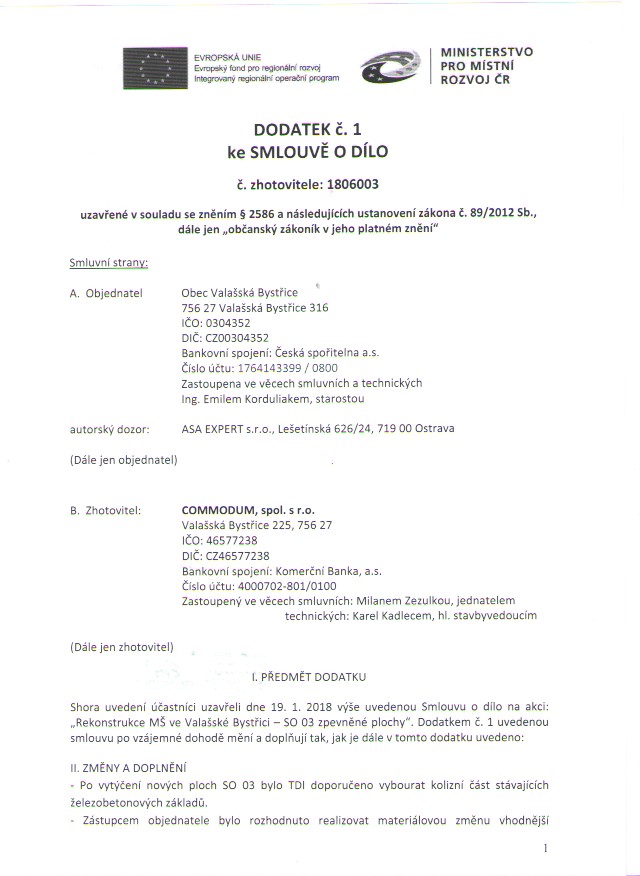 Zakázka - Rekonstrukce MŠ ve Valašsské Bystřici - SO 03 zpevněné plochy