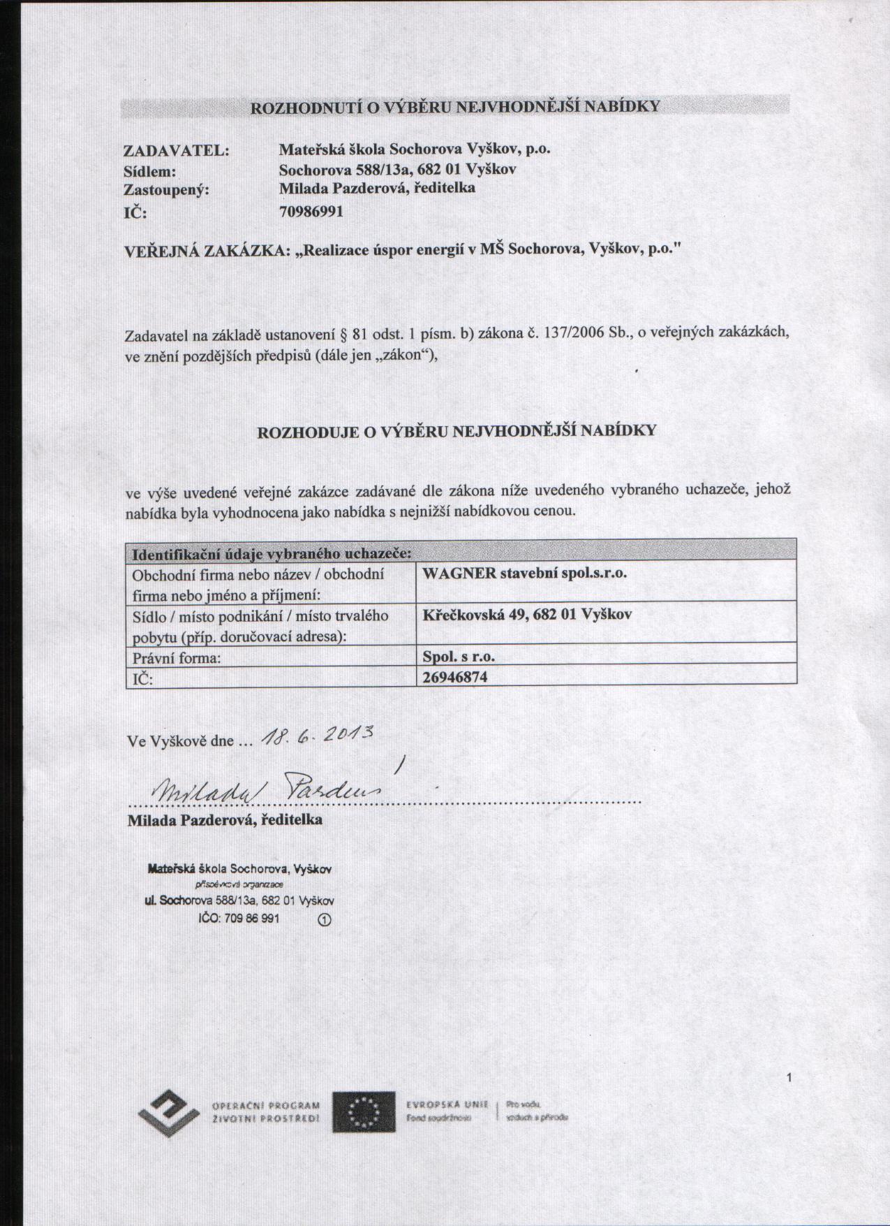 | Rozhodnutí o výběru | 18. 06. 2013 14:44 |